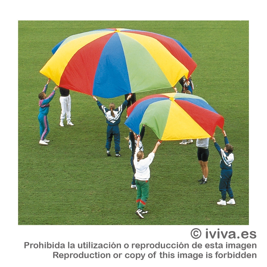 Descripción: Paracaídas fabricado con tela de nylon ligera de 4 colores. Incluye bolsa para su transporte. Disponible varias medidas.