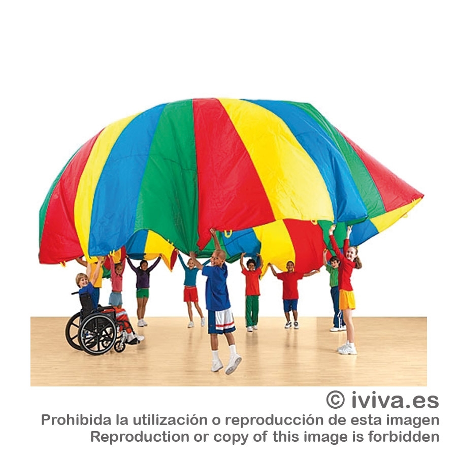 Descripción: Paracaídas fabricado con tela de nylon ligera de 4 colores. Incluye bolsa para su transporte. Disponible varias medidas.